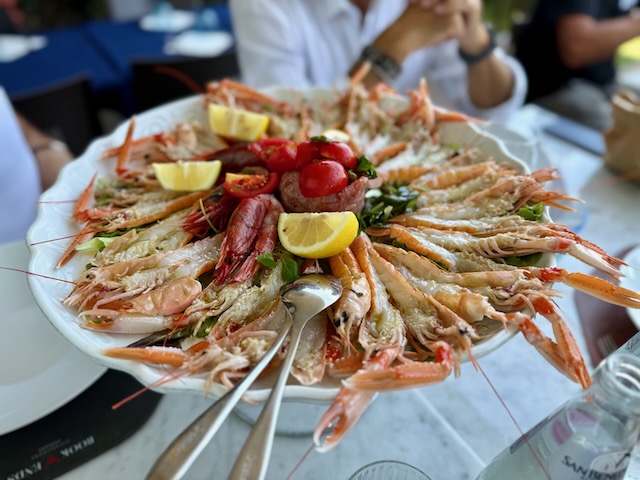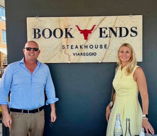 Lunch at Book Ends Steakhouse, a New York-style venue opened in 2023, was a highlight. Born from a friendship between Tuscan restaurateur Michele Giunta and American yacht owner Robert Book, the restaurant—named after Book’s Heesen yacht—delivers premium T-bone steaks cooked over olive wood. Troyer Yachts previously brokered the sale of Book’s Westport 112 “BOOK ENDS” in 2022, adding a personal connection to the experience. Robert (Bob) Book,has owned 17 yachts named Book Ends over 44 years, starting with a 25-foot Cruisers in the 1970s, followed by models from Bayliner, Sunseeker, and Westport 112 as well as 130, and culminating in two Heesen-built superyachts: a 46.7-meter vessel (2017) and a 50-meter yacht (2022). Each Book Ends, named by his wife Amy, reflects his passion for boating and strategic approach to yacht ownership, often selling within two to three years to maintain value. –Read more about the Westport 112 “BOOK ENDS“-