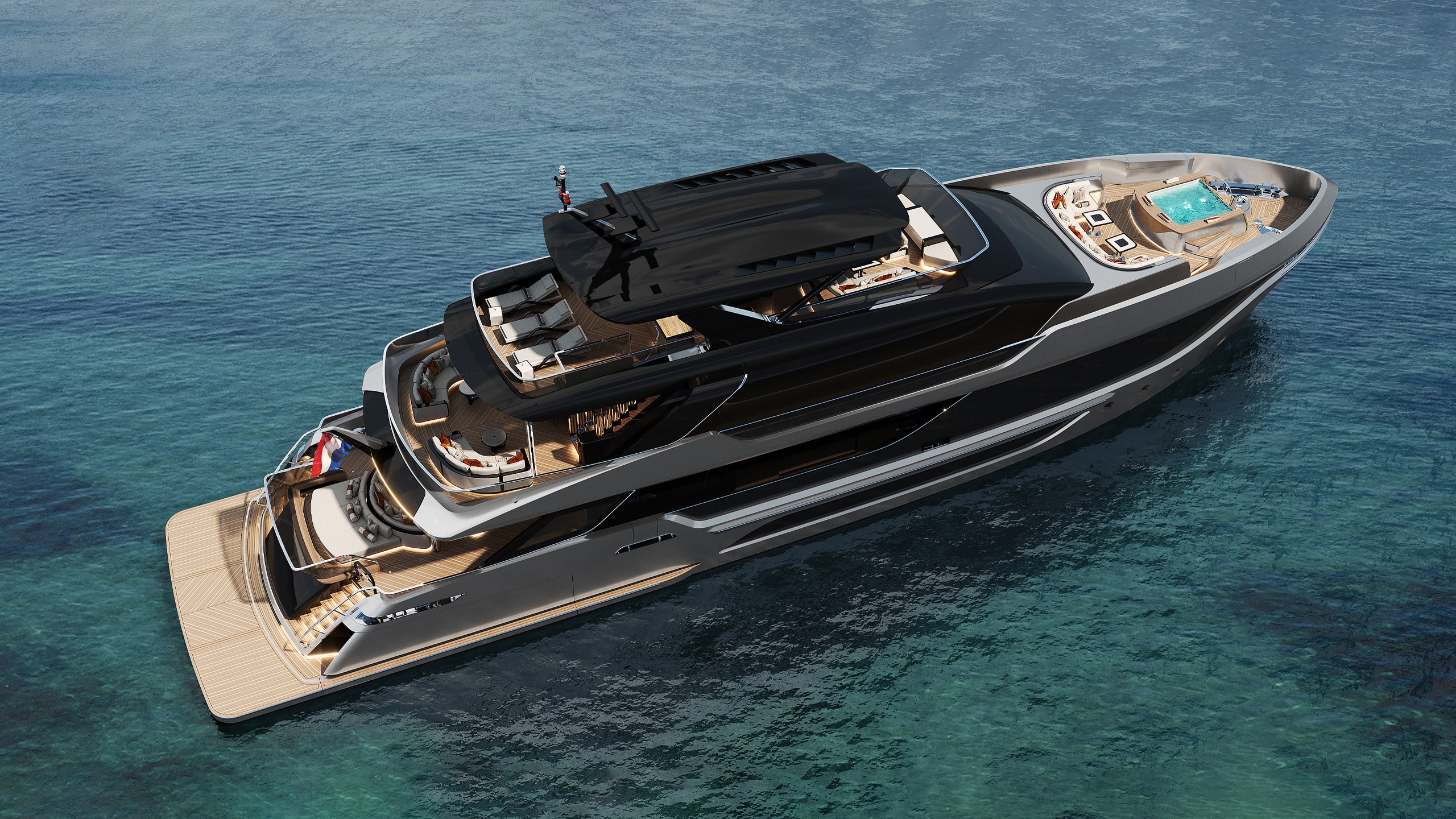 The yard’s biggest in both length and volume, this 40m project kicked off in the Netherlands with designs from SFG Yacht Design and Cristiano Gatto Design. Currently under construction, it promises revolutionary space utilization and modern aesthetics, pushing the boundaries of Van der Valk’s in-house aluminum construction for ultimate customization.