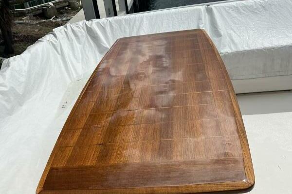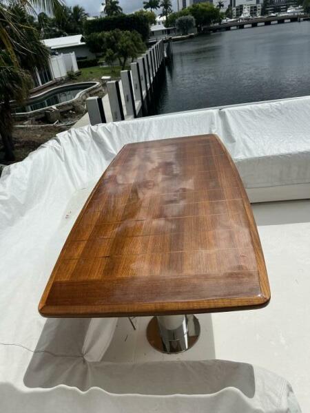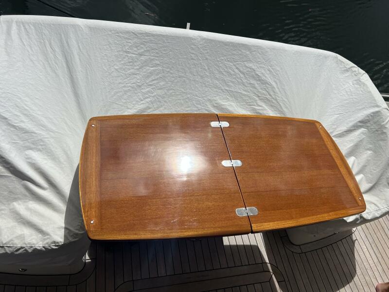 - Teak-laid transom platform, cockpit deck, flybridge stairway and stairs to side decks