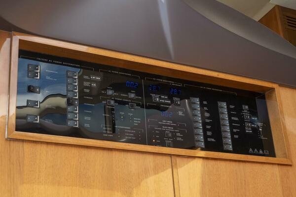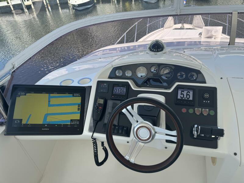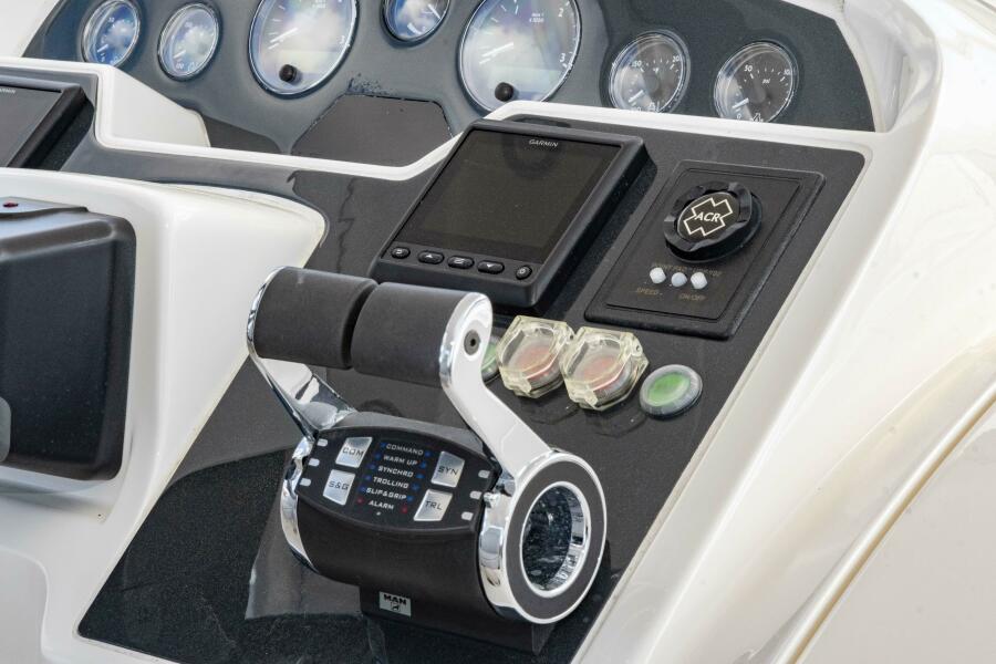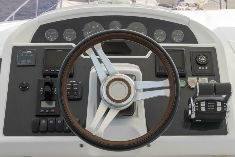 - Controls for bow thruster, stern thruster, windscreen wipers, bilge pump and trim tabs (with indicator) Chart table with light and chart stowage