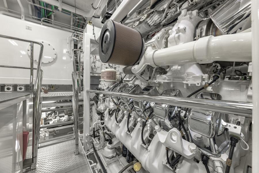 Her immaculate engine room reflects the same pride of ownership seen throughout the yacht, finished with polished stainless steel and maintained by two rotating full-time engineers. A recent 10-year class survey has been completed, three 200kW generators have been fully rebuilt, and the main engines are specified for continuous duty with a service life exceeding 40,000 hours. With barely 25% of their useful life consumed, ROCK.IT is mechanically primed for decades of world-class cruising.
